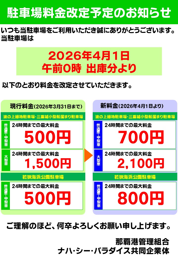 【駐車場料金改定予定についてのお知らせ】